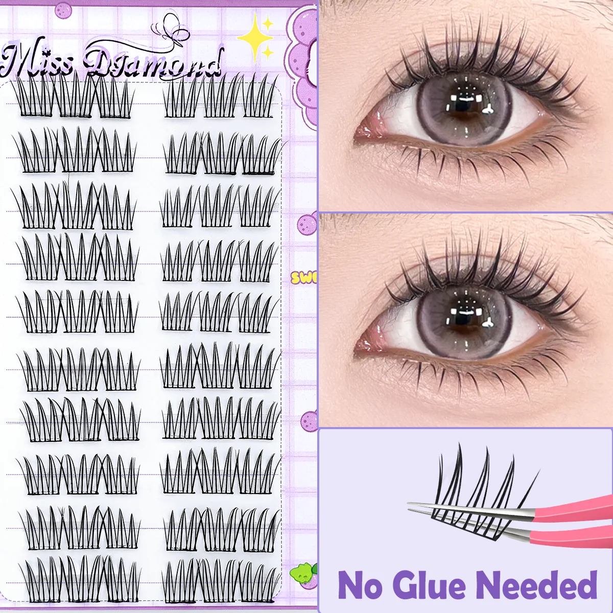 7-13mm 프레스온 래쉬 클러스터 코믹 속눈썹 클러스터 무접착 내추럴 코스프레 인조 속눈썹 쇼핑 데이트 여행용