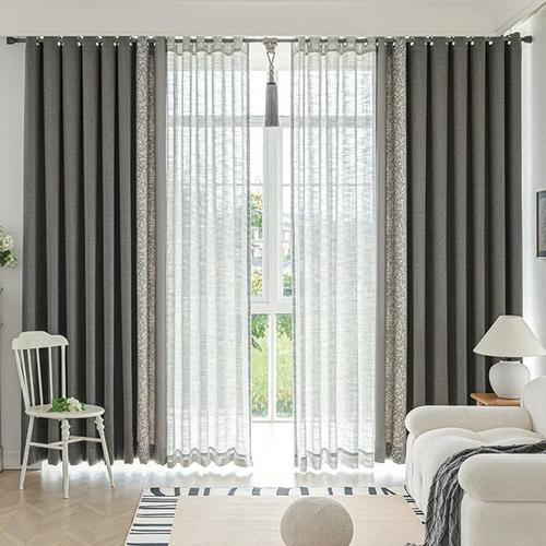 뷰하우스 암막 커튼 아일렛 패턴 원톤 그레이 특대형 BNS