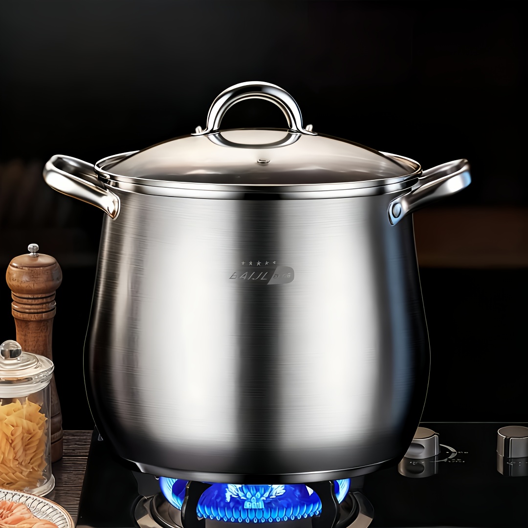 TEMU 뚜껑 포함 대용량 304 스테인리스 스틸 스톡팟 - 튼튼한 구조, 슬로우 쿠키어, 수프, 스톡, 파스타, 밥, 요리용 스톡팟, 수프 만들기, 현대적인 주방용품을 위한 균일한 열 분산|밥솥