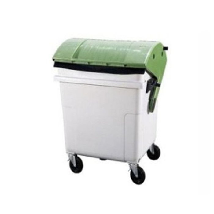 국내생산 1100리터 아파트용 회사용 자동상차 수거용기 (문구: 일반쓰레기), 연회색몸체+주황뚜껑+둥근타입