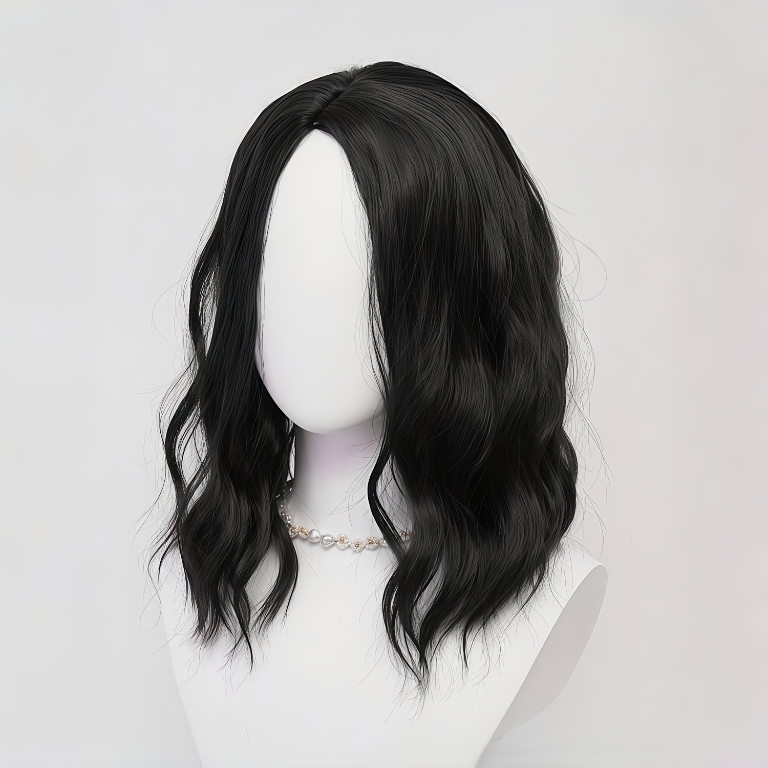 TEMU 누구나 위그, 헤이즈 블루 빅 웨이비 앞머리, 일상 파티 행사용 풀헤드 가발