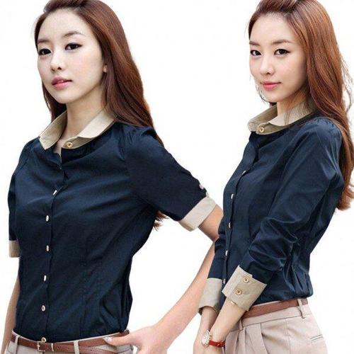 [모노무드]MNO 여성용드레스 블라우스 네이비 장팔 숏티 실크 탑 셔츠 LS0620 클래식