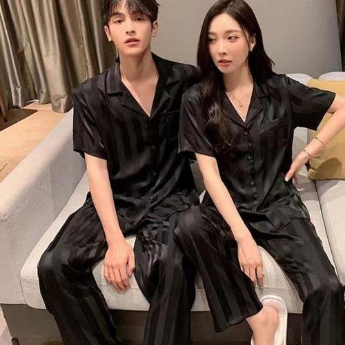 리토리 신상품 입고 커플 남성 여성 실크 사계절 잠옷 반팔 세트 커플파자마