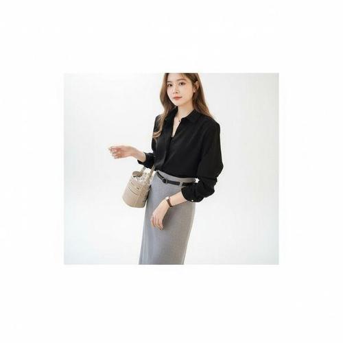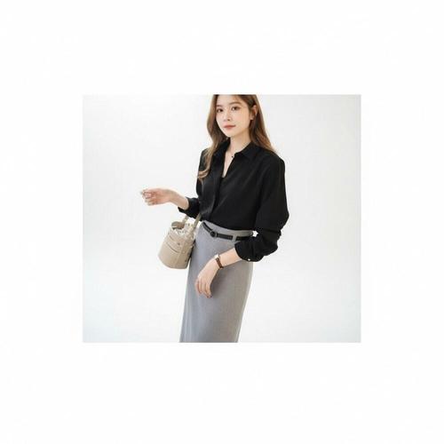 [신상오픈런]여성용 실키 쉬폰 긴팔 블라우스 데일리 오피스 스타일