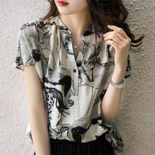 여성 카라 실키 반팔 블라우스 WDM-WBL-KSS2602