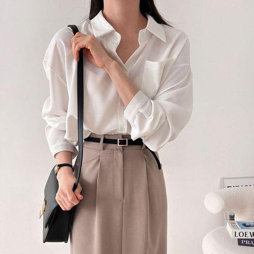 베이직 실키 셔츠 블라우스 여성 오피스룩 봄가을 WFKQ963