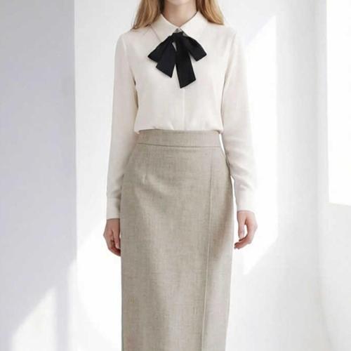 [미니멈]M1AGWB1980IV 리본 넥 심플 블라우스
