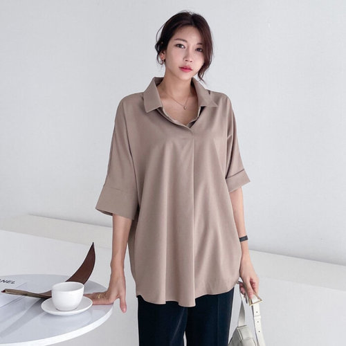 나야홍 / 빅사이즈 504 심플오픈롤업블라우스 DNBE658