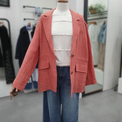 [써스데이아일랜드][여성]체크패턴 린넨 투버튼 자켓 T256MJK135W