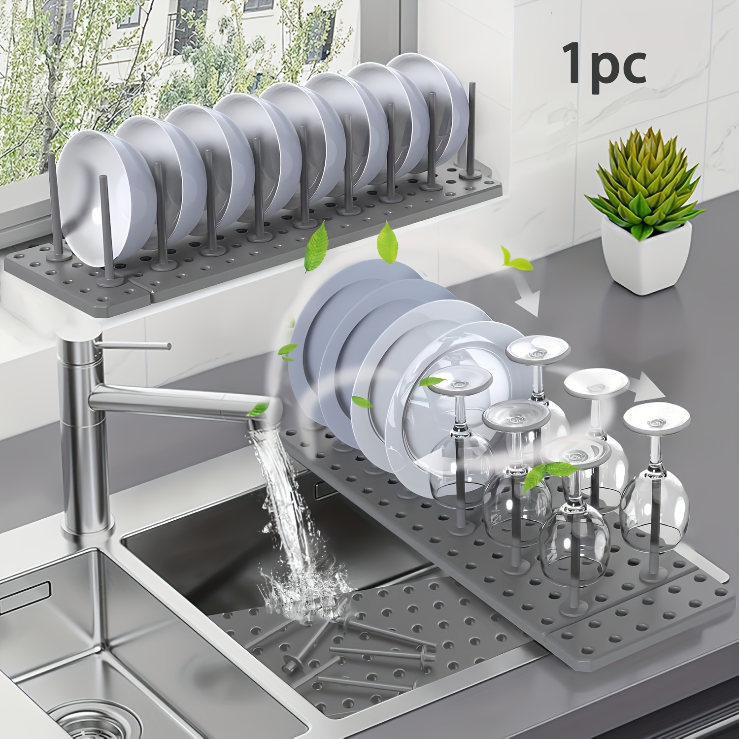 TEMU 1 조절 가능한 주방 서랍 정리함 - 내구성 있는 플라스틱 식기 거치대와 후크, 접시, 컵, 와인 글라스 및 수저를 위한 공간 절약 캐비닛 보관함 - 쉬운 청소 디자인, 접시 및 컵 홀더