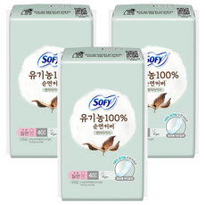 쏘피 유기농 100% 순면커버 팬티라이너, 일반, 40개입, 3개