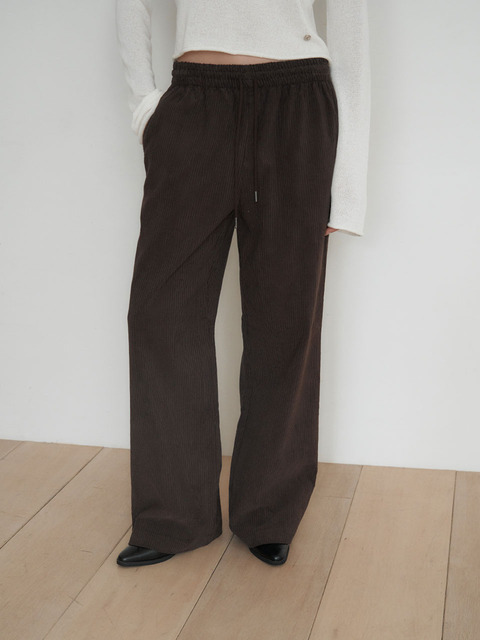카고 와이드 윙클 팬츠 여자 스트링 밴딩 캐주얼 바지