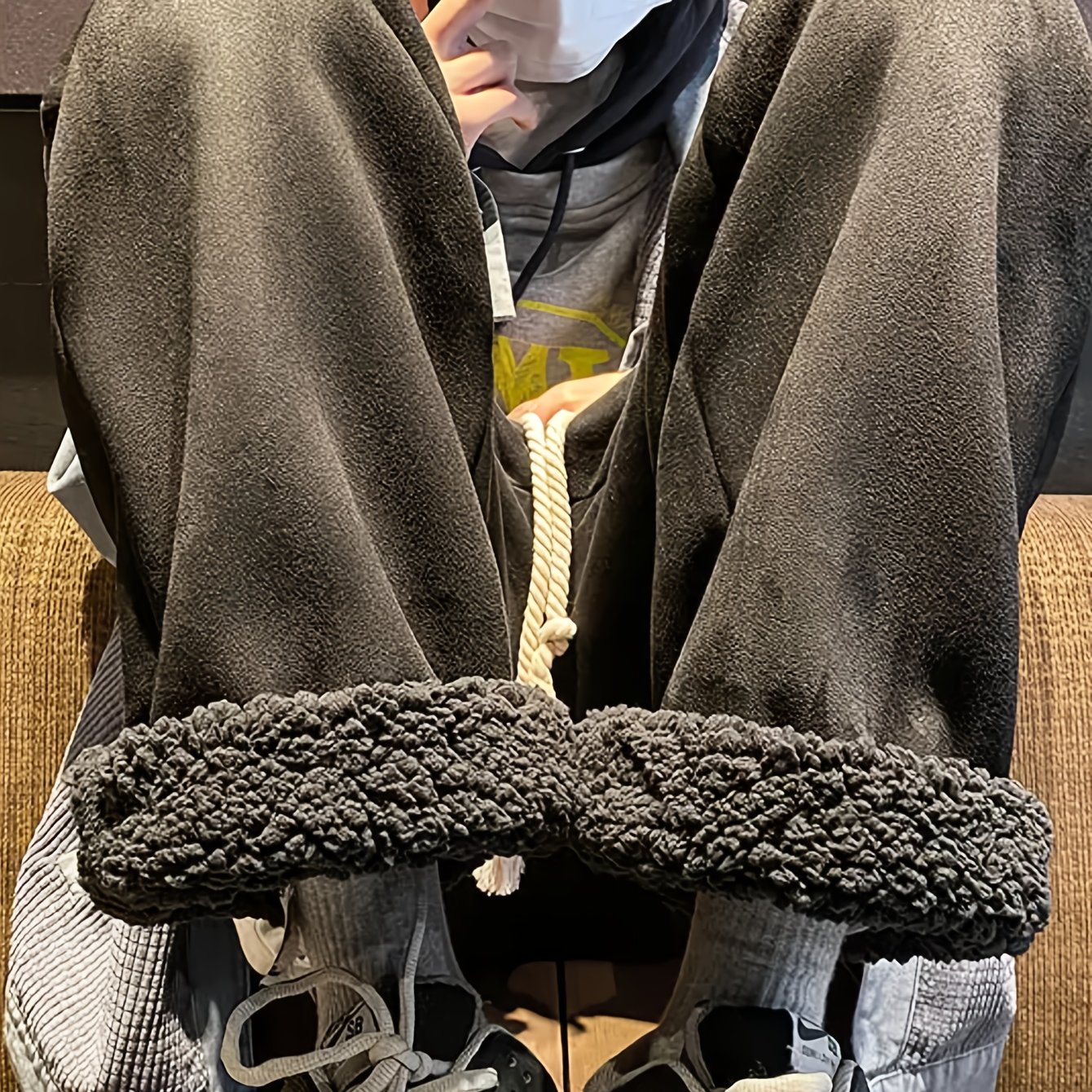 TEMU 여성용 편안한 플리스 안감 와이드 레그 팬츠 - 캐주얼, 두꺼운, 올리브 그린, 신축성 있는 허리끈, 가을과 겨울에 완벽한 편안한 의류 | 편안한 핏 팬츠 | 신축성 있는 허리끈 팬츠