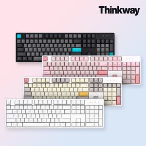 TEMU 키보드용 흰색 라인 키캡 세트, PBT 소재, 승화형, OEM 높이, 미니멀리스트 스타일, ESC, 스페이스 및 입력 키캡 포함