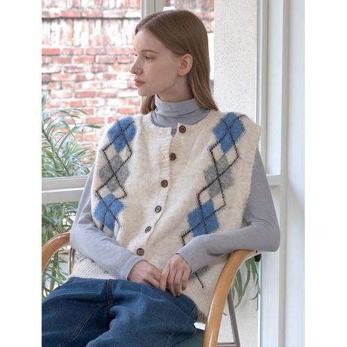 [위시드]아가일 패턴 니트 베스트 (WICDVT003)