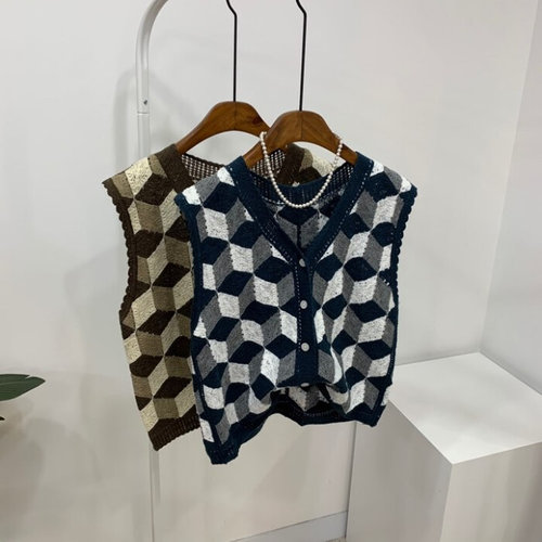 밀스튜디오 DP02 아가일무늬 라운드니트조끼 LRAIVS110
