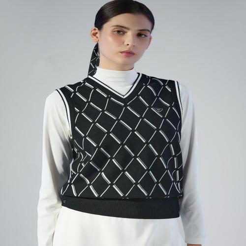 [PREMIUM] 블랙 아가일 버드아이 자카드 니트 베스트 (DNSW5C653BK)