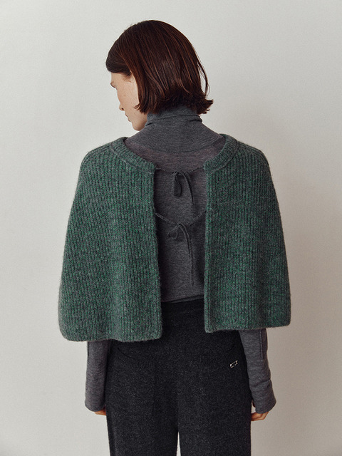 [우마뭉] 베이비 알파카 리브드 케이프 더스티 그린