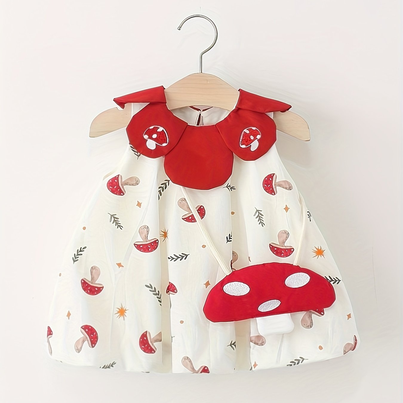 TEMU 어린이를 위한 여름 민소매 세트 2벌, 귀여운 빨간색 버섯 드레스 (여아용), 꽃잎 칼라 디자인으로 유아 및 아동에게 적합|여름원피스|나시원피스|민소매원피스