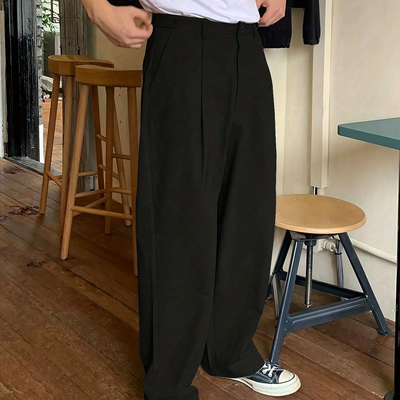 TEMU 남성용 솔리드 컬러 레그 드레스 팬츠 - 헤비듀티 룩 캐주얼 & 드레스 팬츠 (신축성 없음, 사계절용) 화이트 파이핑 스타일 (탄력 없음) - 레그 오프닝, 포켓 웨이스트밴드 - 학교, 결혼식 등 다양한 용도 -