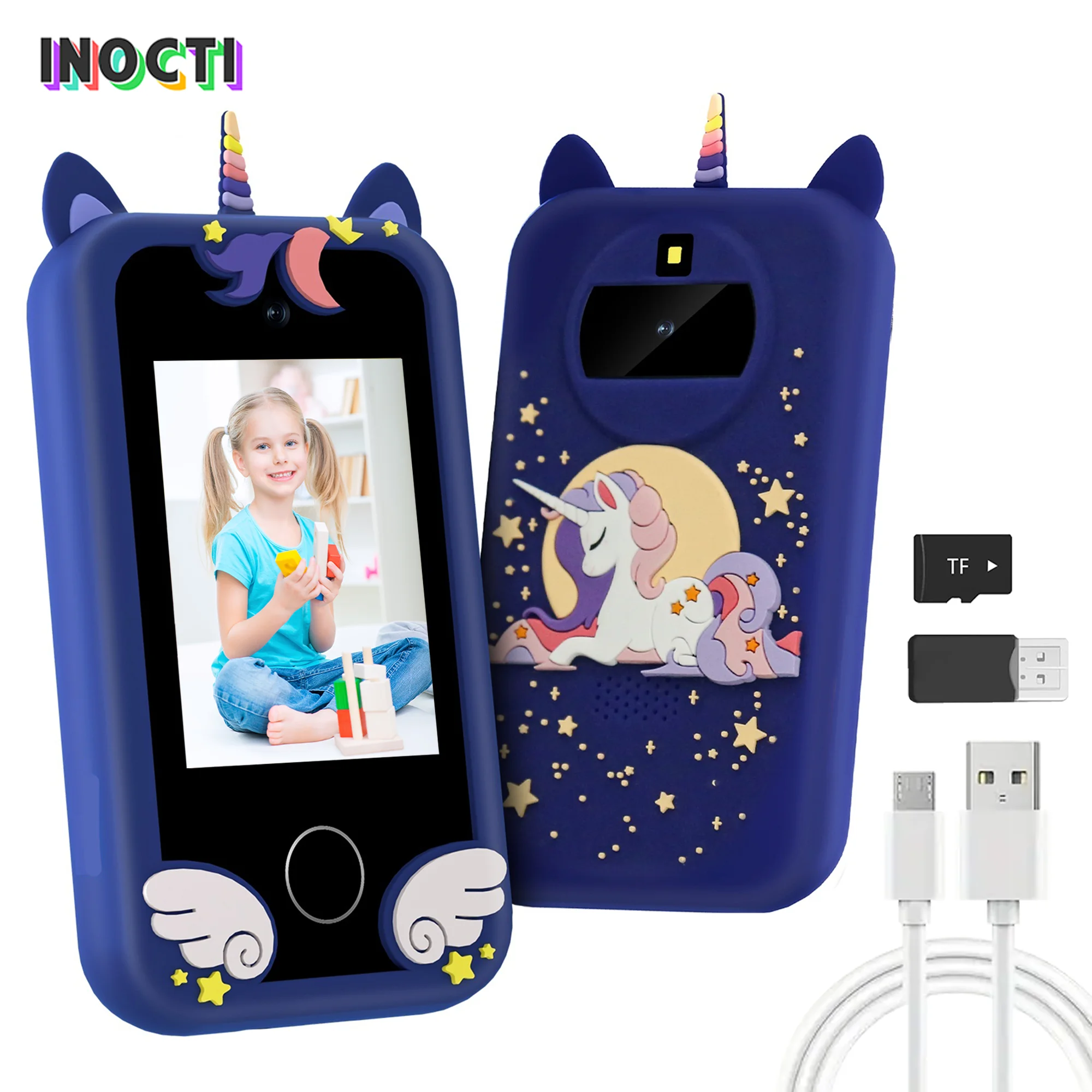 어린이 스마트폰 카메라 장난감, 터치스크린 유니콘, 아기 모바일 MP3 플레이어, 디지털 카메라, 교육용 장난감, 3-8 세 여아 남아용