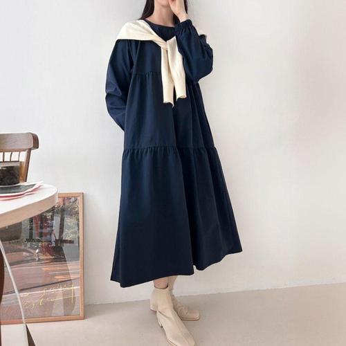 에르디테 / 아노락 바스락 오버핏 반집업 끈 벨트 롱 원피스 3컬