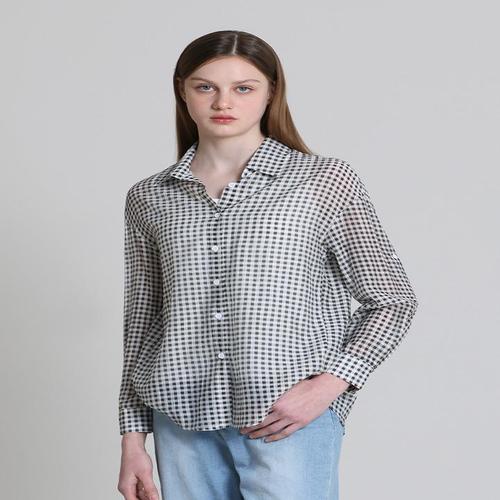 [아날도바시니][아날도바시니(ARNALDO BASSINI)] (끈나시)벌룬턱 시스루 체크 5부셔츠 (택가격 78000원)