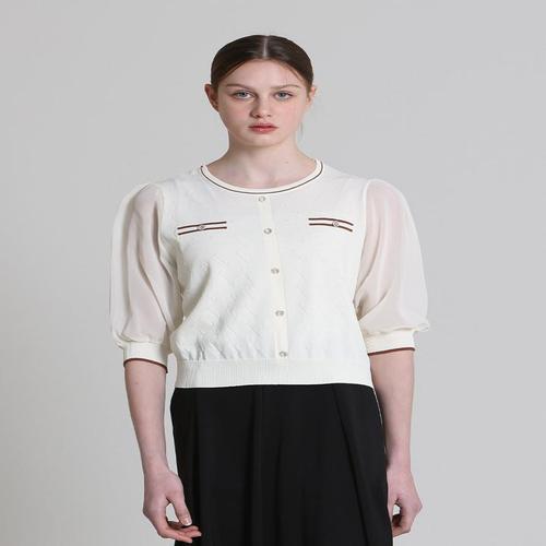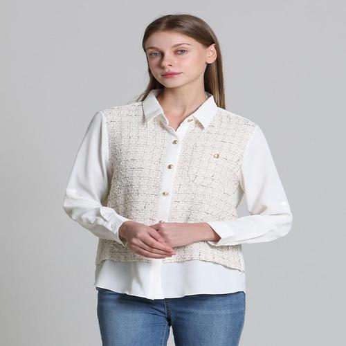 [아날도바시니][아날도바시니(ARNALDO BASSINI)] 트위드 배색 포켓 오픈 블라우스 (택가격 238000원)