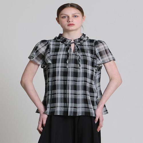 [아날도바시니][아날도바시니(ARNALDO BASSINI)] 썸머쉬폰 타탄 프릴리본 블라우스 (택가격 98000원)