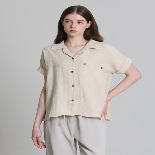 [아날도바시니][아날도바시니(ARNALDO BASSINI)] 린넨투톤 자수포켓 카라 블라우스 (택가격 118000원)