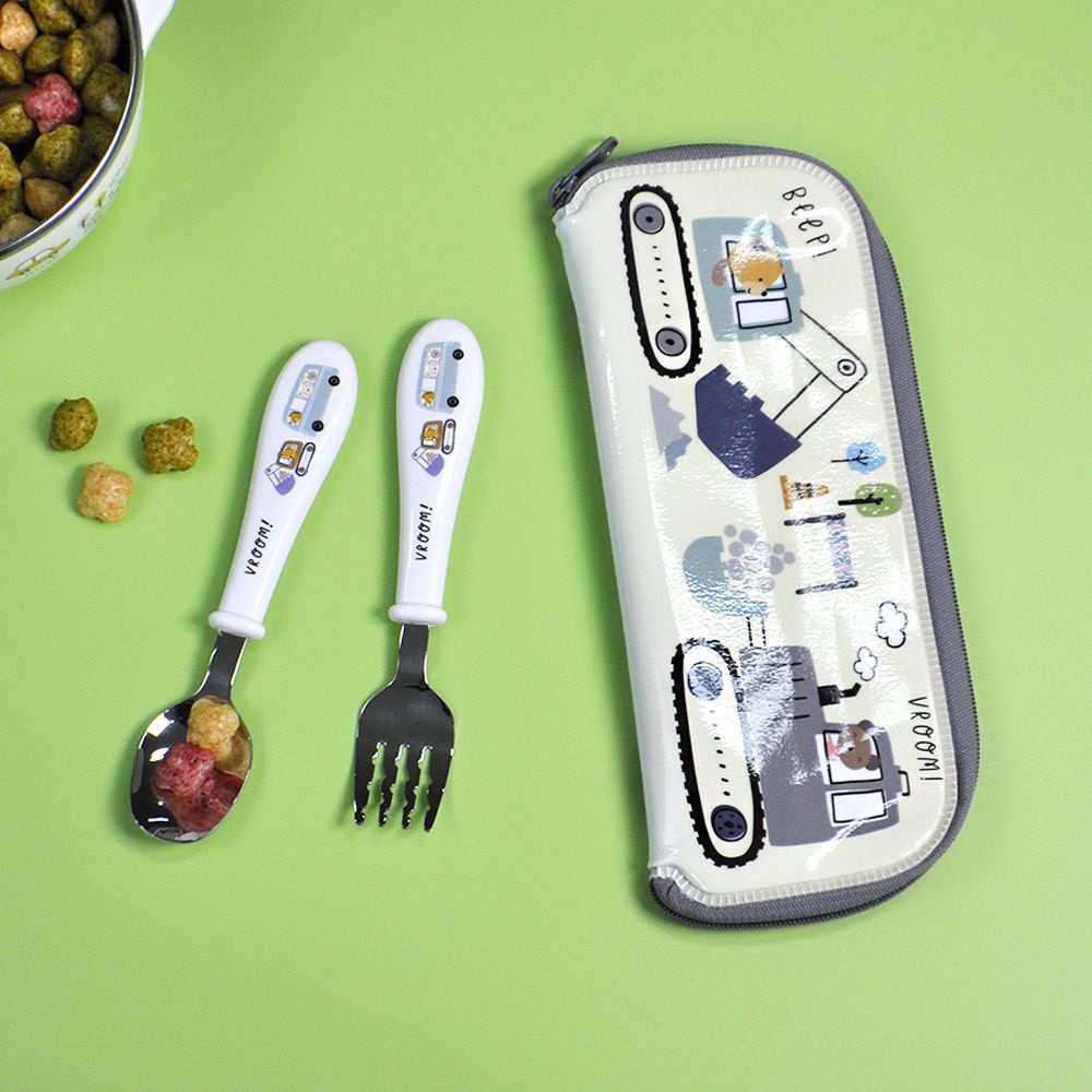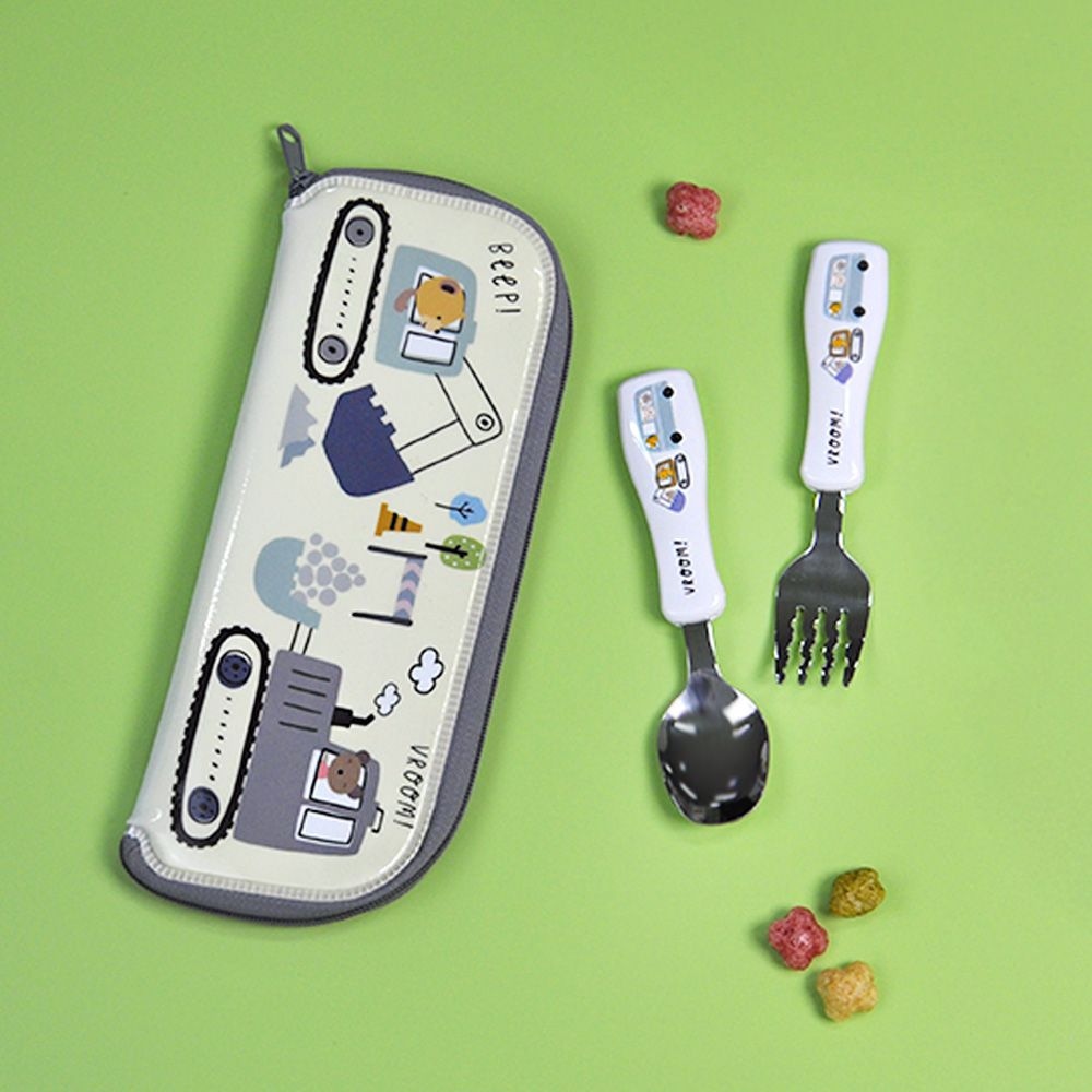 부릉부릉 마스코트 스텐304 아동 스푼 포크 수저케이스 세트 국산 자기주도 유아 숟가락