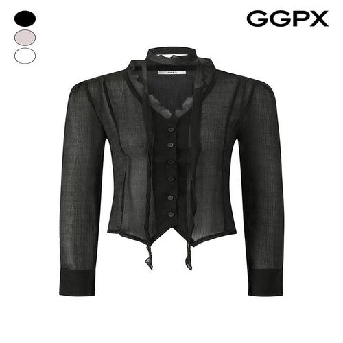 [GGPX]러플 버튼 시스루 스카프 블라우스 (GQ1SH015F)