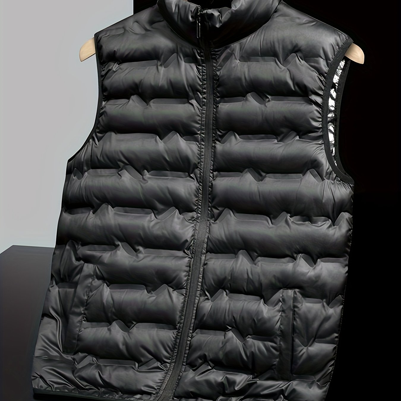 TEMU 남성용 가을/겨울 패딩 조끼, 보온 및 방한 기능, 패셔너블 테이프 솔기, 지퍼 포켓, 세탁기 사용 가능, 일상 캐주얼 및 아웃도어 스포츠 착용에 적합