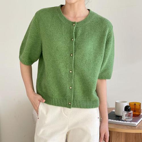 [다잇템]여자 겨울반팔니트 라운드 금장버튼 가디건