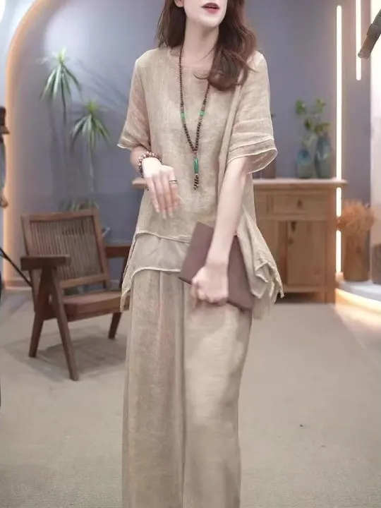레트로 코튼 린넨 세트 여성 여름 신상 에스닉 스타일 루즈 슬림 배 커버 투피스 세트 패셔너블 캐주얼 의상
