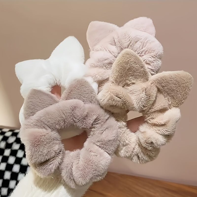 TEMU 4개 세트 가을 겨울 플러시 고양이 귀 머리띠, 여성용 고급스러운 포니테일 헤어밴드, 요정 같은 달콤한 번, 데일리 착용에 적합한 스칼프 밴드 헤어 액세서리, 일상 헤어 스타일링,달콤한 디자인,요정 미학,내구성 있는 헤어 타이,편안한 착용감,고양이 귀 머리띠,번 홀더,애니메이션 애호가