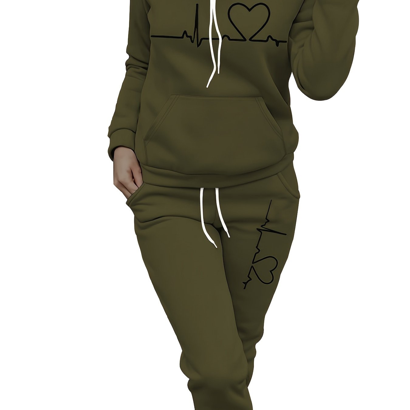 TEMU 여성용 보르도 데일리 세트 가을/겨울 – "하트비트" 프린트 스웨트셔츠 + 매칭 조거 팬츠, 폴리에스터-엘라스탄 혼방, 세탁기 사용 가능, 스웨트셔츠와 조거 팬츠 세트