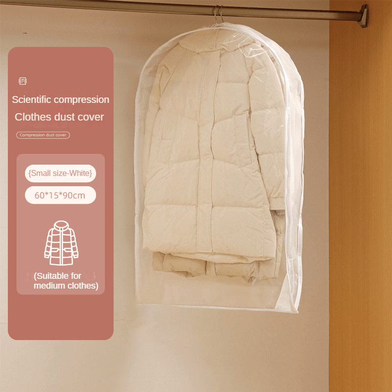 TEMU 투명하고 압축된 먼지 방지 커버, 옷 보관 가방, 대용량 PEVA 먼지 방지 및 교체 옷장 압축 가방, 옷장 홈 사용용 다운 재킷 코트 슈트 커버 (소형/중형/의류) 그레이/화이트