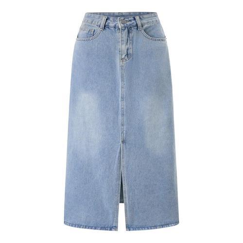 [나인식스뉴욕]데님 앞 트임 벨티드 롱 스커트 (NQ2WH002L0)