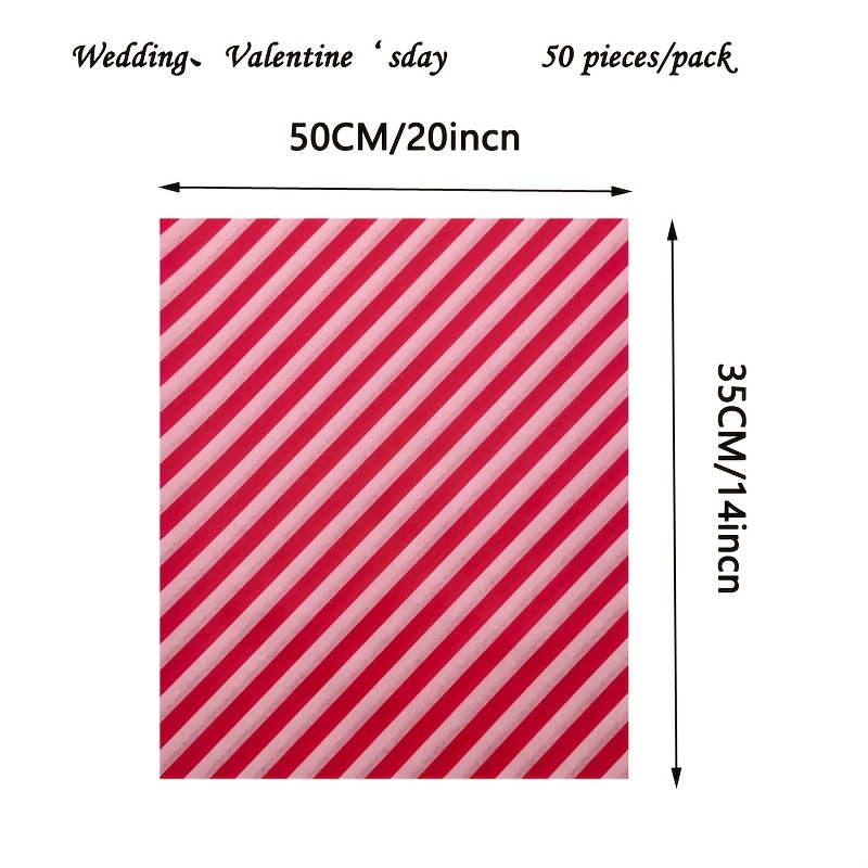 TEMU 50매 발렌타인데이 티슈 페이퍼, 빨간색 및 분홍색 디자인, 선물 포장 또는 결혼식 및 휴일 공예용으로 완벽, 50cm x 35cm