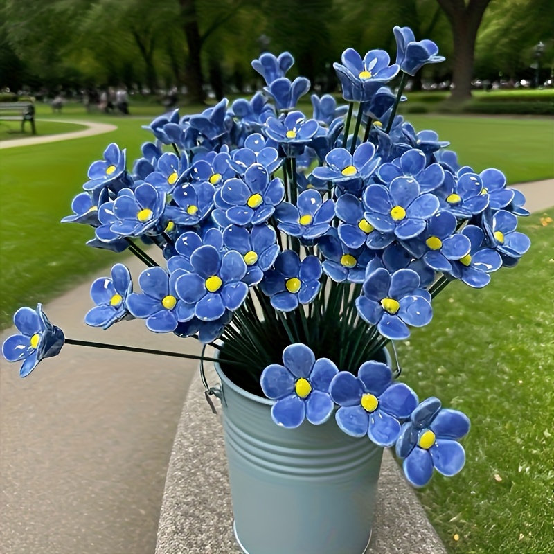 TEMU 12개 수제 세라믹 잊어버린 꽃, "블루 러브" 장인들이 만든, 퇴색 방지 영원한 홈 데코, 실내 및 실외 사용에 적합 – 완벽한 선물