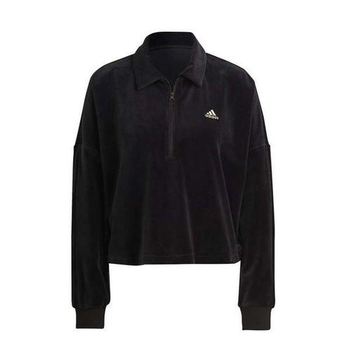 [아디다스]크롭 벨루어 쿼터 반집업 벨벳셔츠 블랙 IM2582