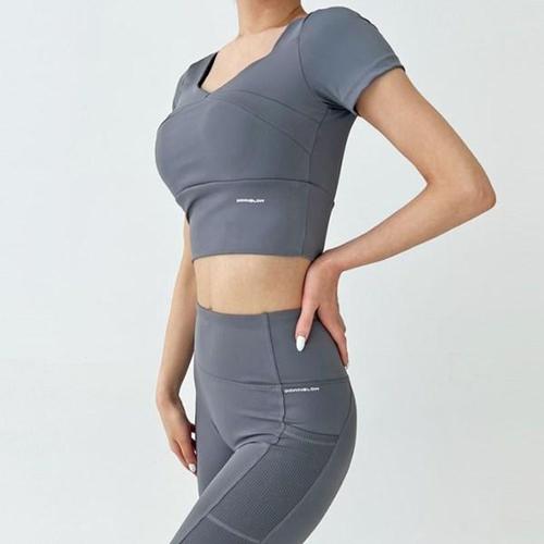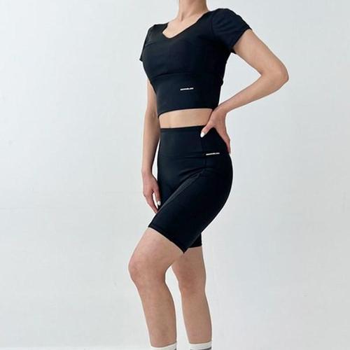 [옷자락] 여성 스포티 스판 크롭 반팔티 5부 레깅스 세트