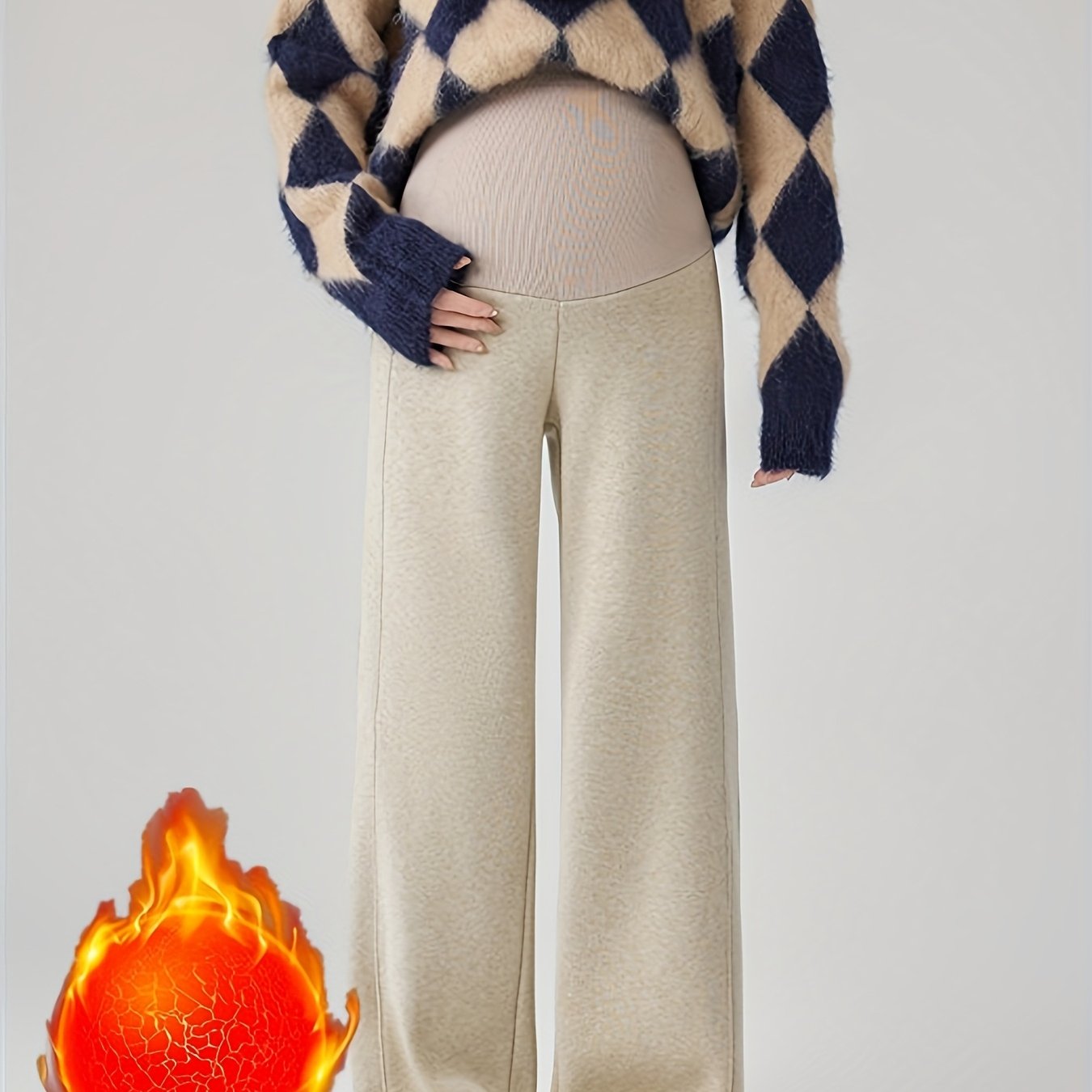 TEMU 여성용 겨울 마더워크 바지 - 두꺼운 따뜻한 하이웨이스트 복부 제어 바지, 조절 가능한 탄성 허리 & 와이드 레그 - / - 마더워크, 마더워크 의류, 임산부 의류
