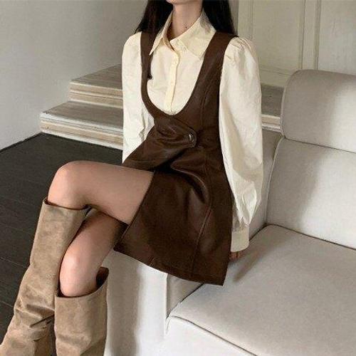 [아리엘스타일]가을 레더원피스 모던 시크무드 디베라원피스세트