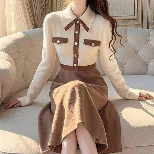 [아리엘스타일]배색 카라버튼 토라핀니트롱원피스