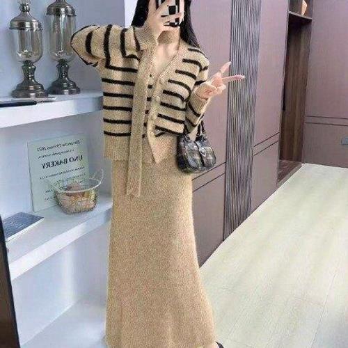 [아리엘스타일]스트라이프 가디건 롱스커트 요엘라니트투피스