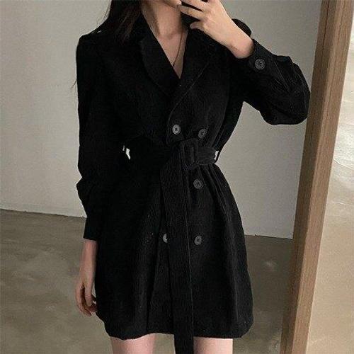 [아리엘스타일]셔츠카라 트렌치무드 페미닌룩 에스라코듀로이원피스