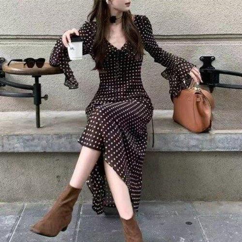 [아리엘스타일]봄데이트룩 도트포인트 플레어원피스 로나땡땡이원피