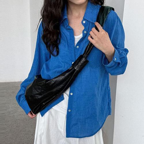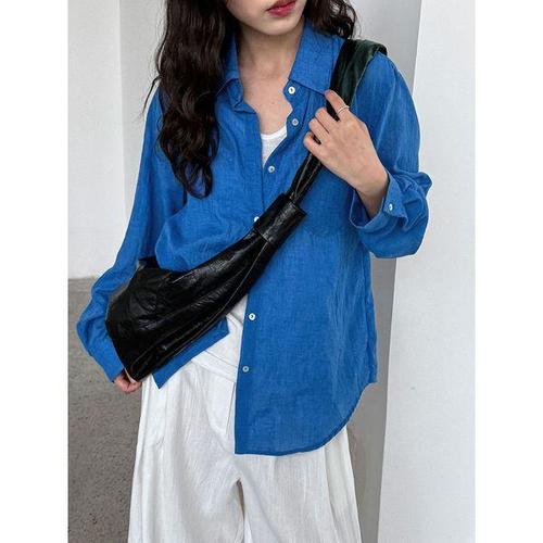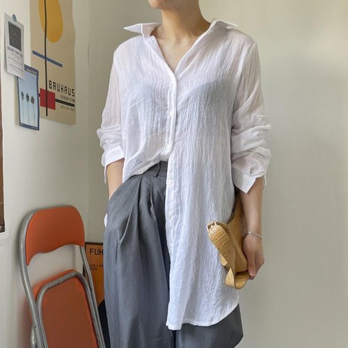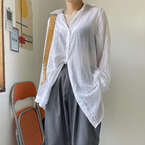 [다잇템] 여자 코튼셔츠 얇은 여름긴팔 아사 비침 셔츠